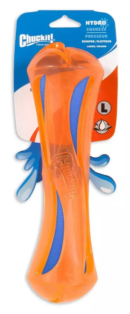 Іграшка CHUCKIT! HYDROSQUEEZE BUMPER – іграшка для собак великих розмірів, призначена для утримання і випускання води під час гри, а також для того, щоб допомогти вашому собаці самому впоратися зі спекою.