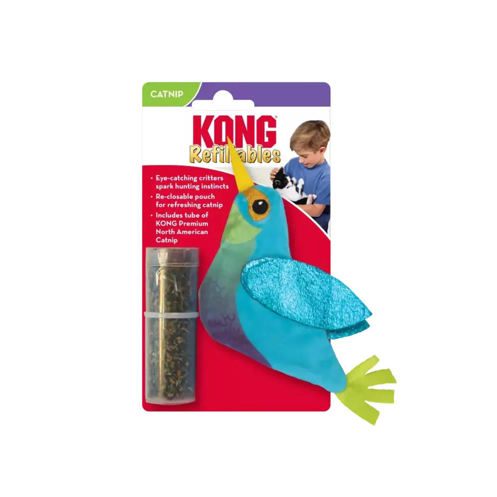 KONG Refillables Hummingbird — це яскрава та захоплива іграшка для котів, яка імітує колібрі та має змінний контейнер для котячої м’яти. Ця іграшка розроблена для стимуляції природних мисливських інстинктів вашого улюбленця, забезпечуючи йому години активної гри.