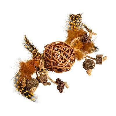 Серія WAUCAT Fun Natural — це іграшки, які виготовлені виключно з екологічних матеріалів, а отже дбайливі до навколишнього середовища. Плетений м'ячик має у складі котячу м'яту та мататабі. Котяча м’ята стимулює активність котів, допомагає знімати стрес і покращує настрій. Мататабі заспокоює котів, стимулює апетит і сприяє очищенню зубів. Крім того, вони абсолютно безпечні для тварин та призначені для задоволення природних інстинктів улюбленця. Завдяки пір'їнкам та іншим декоративним елементам, іграшка одразу приверне увагу котика та зацікавить його на довгий час.