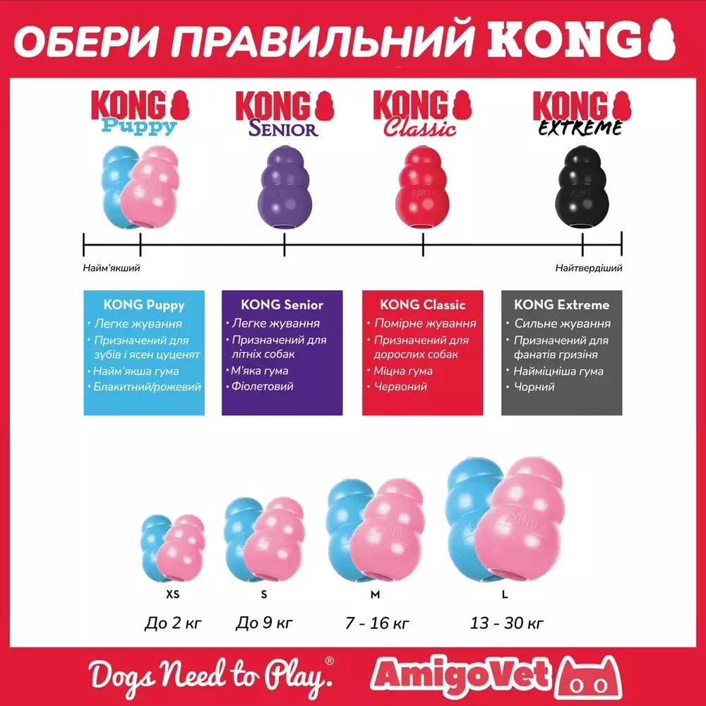Підбирайте розмір відповідно до ваги улюбленця. Найменший розмір - має легке жування, відповідно нам’якіший матеріал.