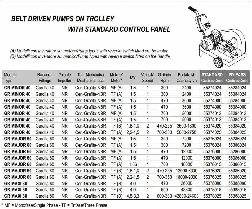 Імпелерний насос для гумового латексу LIVERANI GR MAXI 80 +BY-PASS NR TF(B) 4 кВт, 600 об/хв, 380В ремінний на візку з стандартною панеллю управління