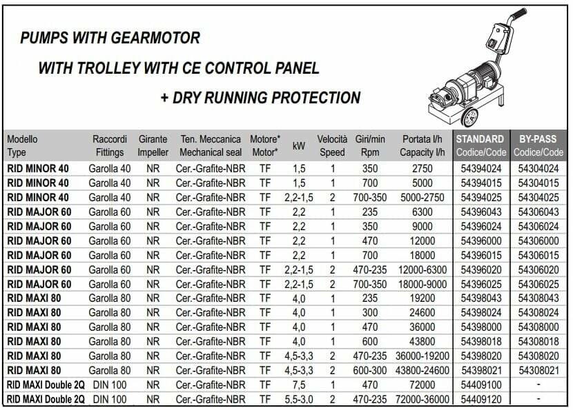 Імпелерний насос для клею LIVERANI RID MAXI 80 NR TF 4,0 кВт, 470 об/хв, 380В з редуктором, на візку з панеллю управління CE, захистом від сухого ходу