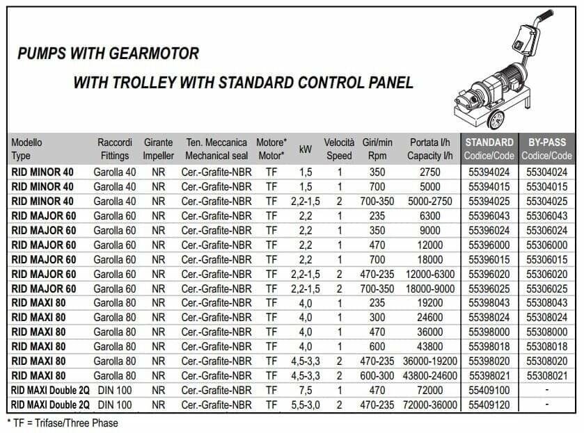 Імпелерний насос для розсолу LIVERANI RID MAJOR 60 NR TF 2,2-1,5 кВт, 470-235 об/хв, 380В з редуктором, на візку з стандартною панеллю управління