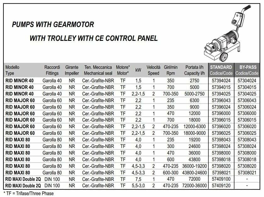 Імпелерний насос для в’язких харчових продуктів LIVERANI RID MAXI 80 NR TF 4,0 кВт, 600 об/хв, 380В з редуктором, на візку з панеллю управління CE