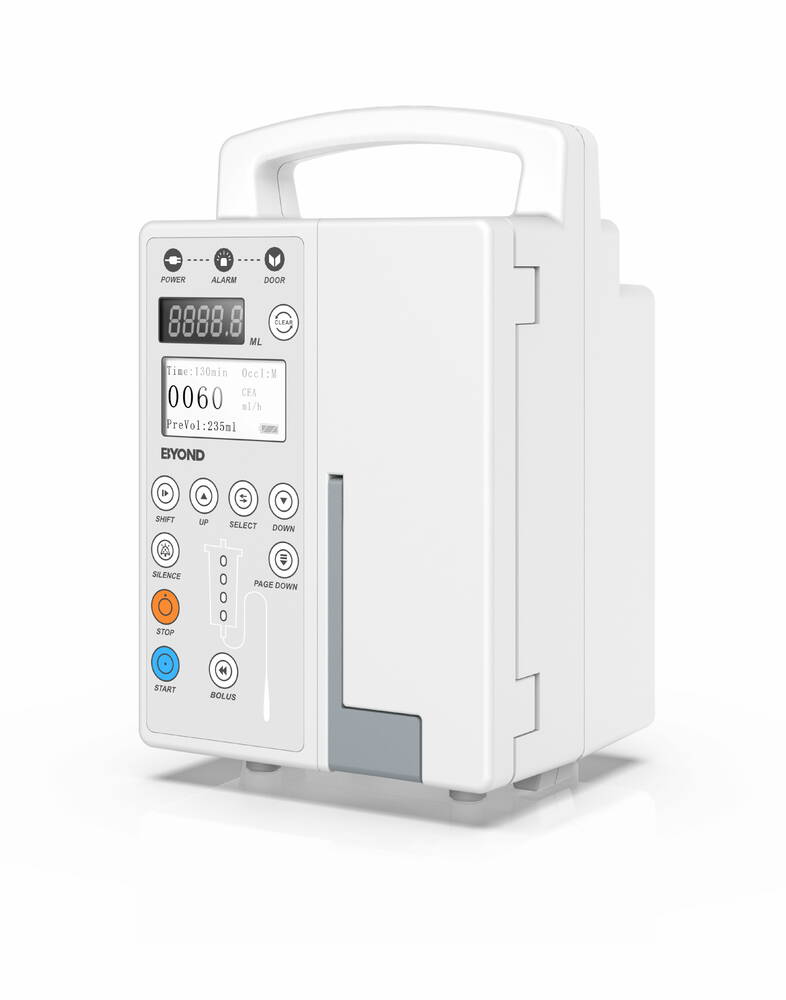 Переносна модель інфузомата BYS-820 розроблена для максимально точного контролювання процесу інфузії з використанням мікропроцесора та надійної системи керування. Рекомендується для застосування в хірургічних та реанімаційних відділеннях лікарень, ветклінік, в палатах інтенсивної терапії, акушерстві, педіатрії тощо. Для виготовлення корпусу апарату використані міцні та надійні матеріали. На передній панелі пристрою розміщений дисплей для візуального контролювання головних параметрів роботи та цифрове табло, на якому відображується об'єм інфузії.