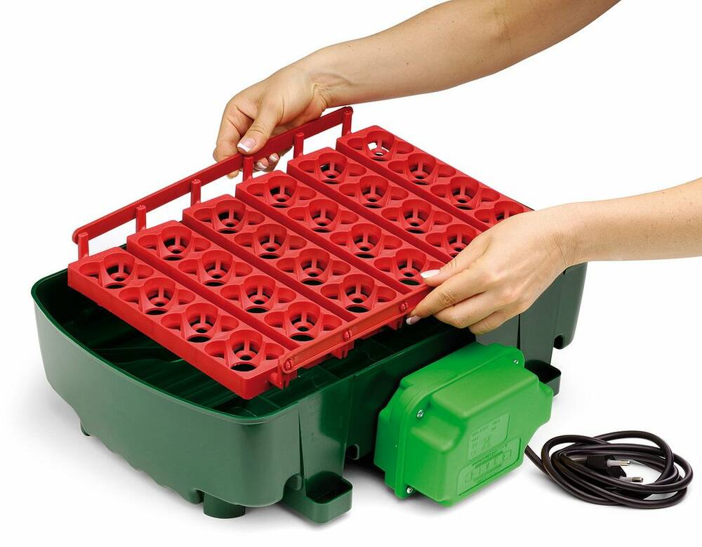 • У пристрої передбачена пластикова решітка, де розміщуються яйця за три дні до вилуплення (в комплекті).