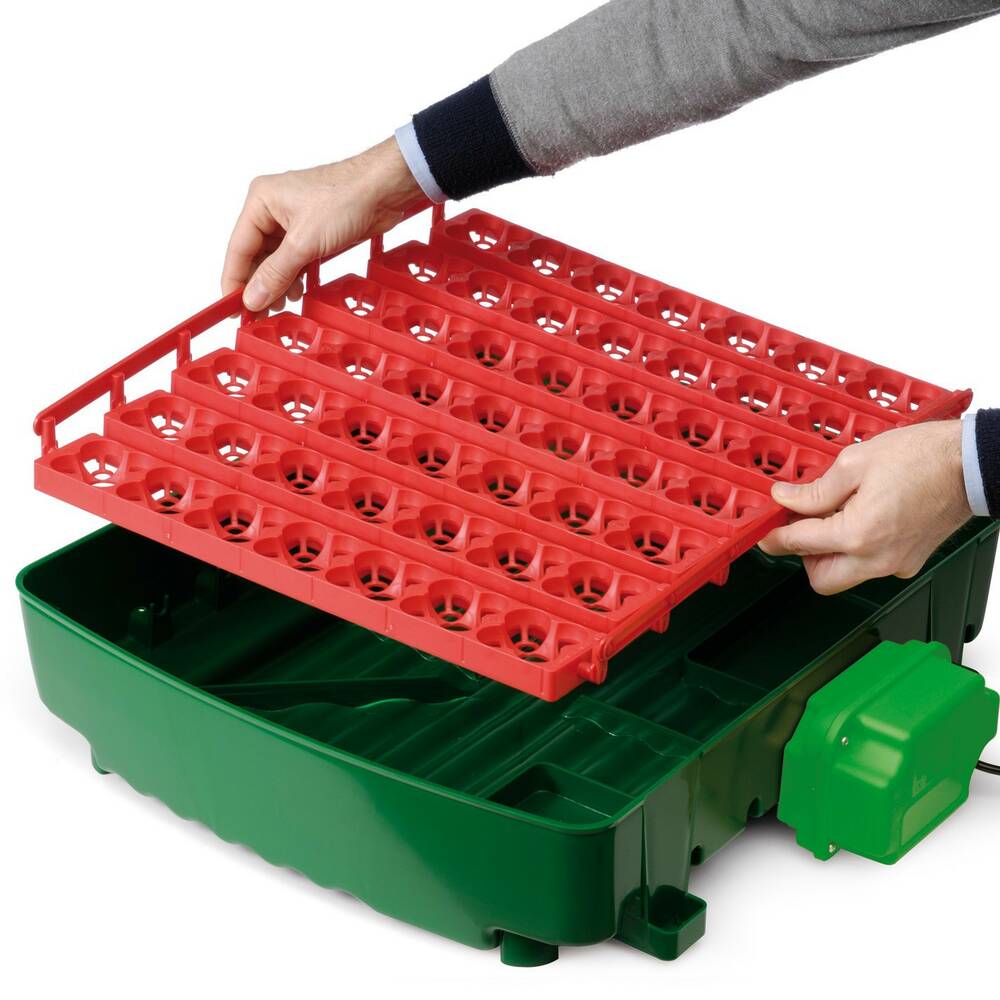 • У пристрої передбачена пластикова решітка, де розміщуються яйця за три дні до вилуплення (в комплекті).
