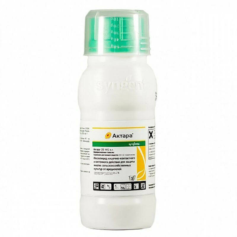 Актара - системний інсектицид нового покоління широкого спектру дії, який характеризуєтся високою ефективністю і прудуктивністю дії ( впродовж 15 хв. після обробки) незалежно від погодних умов і який направлений на захист посадок картоплі, томатів, баклажан, капусти і плодових дерев від багатьох шкідників. Унікальний новий механізм дії виключає розвиток перехресної стійкості до цього препарату.Діюча речовина Актари інтенсивно поглинається рослиною і швидко розноситься до найвіддаленіших точок росту, захищаючи всю рослину.Актара справляє на шкідників шлункову та контактну дію.