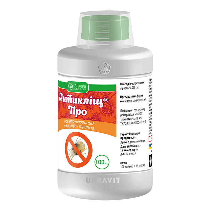 Антикліщ ПРО - інсекто-акарицид контактної дії для захисту плодових та декоративних культур від кліщів.