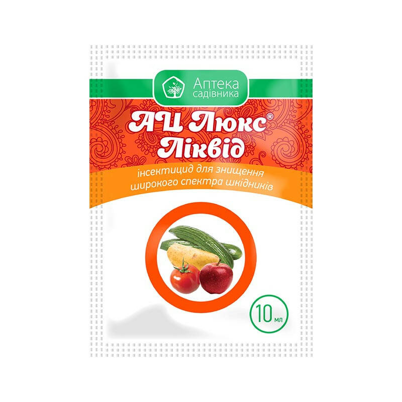 Особливості використання: Робочий розчин препарату застосовують у рекомендованих нормах шляхом суцільного обприскування в період вегетації за появи шкідників (при перевищенні їх рівня ЕПШ). Роботи рекомендовано проводити в ранкові – (до 10) і вечірні (18-22) години при мінімальній швидкості вітру (не більше 2 м/с), у теплицях – за належної вентиляції . Необхідно забезпечити достатнє і рівномірне покриття оброблюваної культури без стікання робочого розчину. Оптимальна температура застосування – +10…+25°С. Не рекомендовано застосовувати інсектицид АЦ Люкс Ліквід, коли культури перебувають у стресовому стані (під час посухи, надмірного зволоження ґрунту, ураження хворобами, пошкодження приморозками тощо). За даними багаторічних досліджень, обробки можливо проводити у вечірні, нічні та ранкові години (коли відсутній активний літ запилювачів) в період цвітіння ріпака та плодових насаджень.
