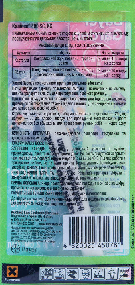Каліпсо - системний інсектицид, має контактну і кишкову дію. Який дозволяє контролювати широкий спектр шкідників саду та городу.