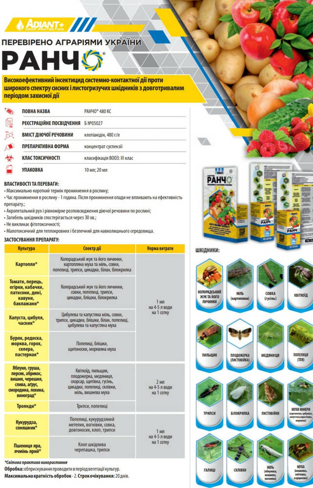 Ранчо - Высокоэффективный инсектицид системно-контактного действия против широкого спектра сосущих и листогрызущих вредителей с длительным периодом защитного действия.