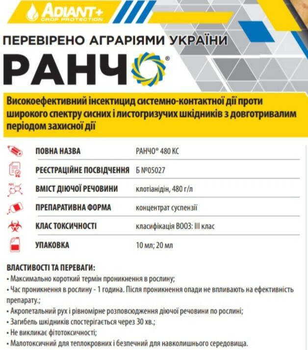 Ранчо - Высокоэффективный инсектицид системно-контактного действия против широкого спектра сосущих и листогрызущих вредителей с длительным периодом защитного действия.