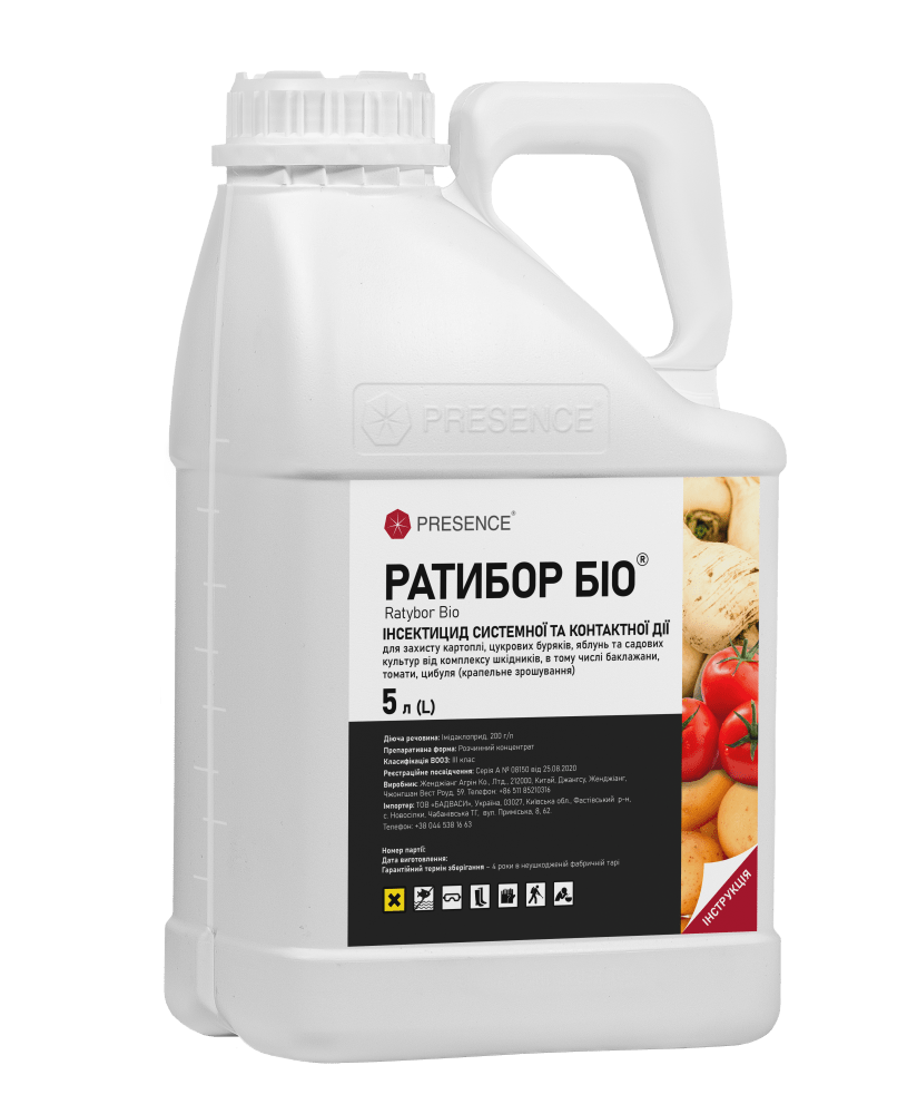 Ратибор – це інсектицид системної дії для захисту картоплі, цукрових буряків, яблунь та садових культур від комплексу шкідників, в тому числі баклажани, томати, цибуля (крапельне зрошування).