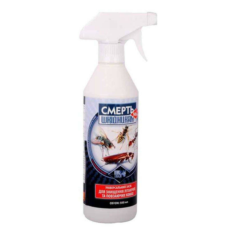 Інсектицид Смерть Шкідникам №2 - ефективний інсектицидний препарат миттєвої дії для знищення будь-яких літаючих і повзаючих комах зовні і всередині приміщень. Засіб має тривалим періодом дії. Комахи гинуть вже на першу добу після застосування. Смерть шкідникам не має неприємного запаху і не руйнує озоновий шар роблячи його безпечним для навколишнього середовища. Сучасний інсектицидний спрей діюча речовина якого на основі тетраметріну і етофенпрокса створена в Італії, здатна впоратися з усіма видами літаючих і повзаючих комах
