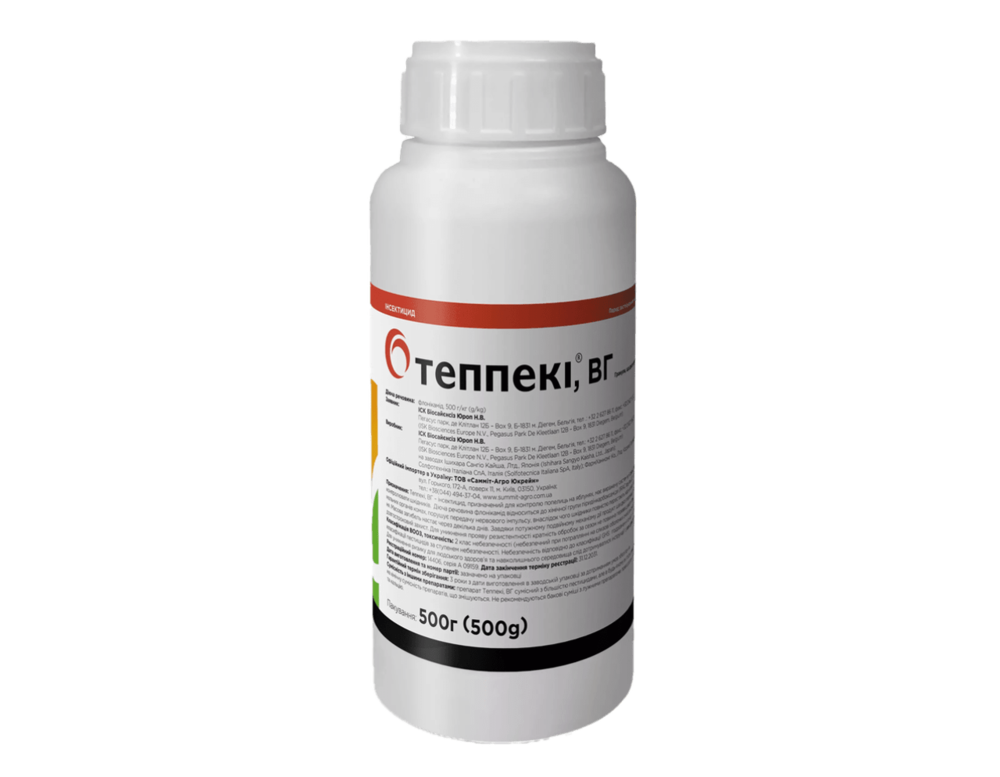 Механізм дії: Теппекі - це інгібітор харчування. Діюча речовина флонікамід відноситься до хімічної групи піридінкарбоксаміди (IRAC група 29), за механізмом є модулятором хордотональних органів комах, порушує передачу нервового імпульсу, внаслідок чого шкідники повністю перестають харчуватися (яскраво виражений антифідинговий ефект).
