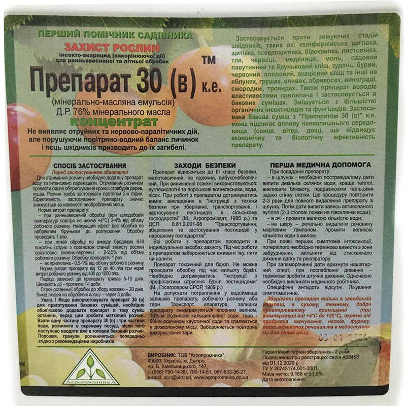 Препарат 30В пройшов випробування у Київському інституті захисту рослин, Інституті зрошуваного садівництва НААН України, Інституті виноградарства в Херсонській області, Українському державному центрі по дослідженню і прогнозуванню техніки і нових технологій для сільського господарства.