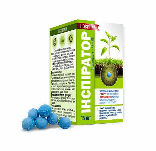 ІНСПІРАТОР – це високоефективний інсектицид контактно-кишкової дії для захисту сільськогосподарських культур від ґрунтових шкідників. Препарат випускається у формі таблеток, які забезпечують зручність у застосуванні та тривалий захист рослин.
