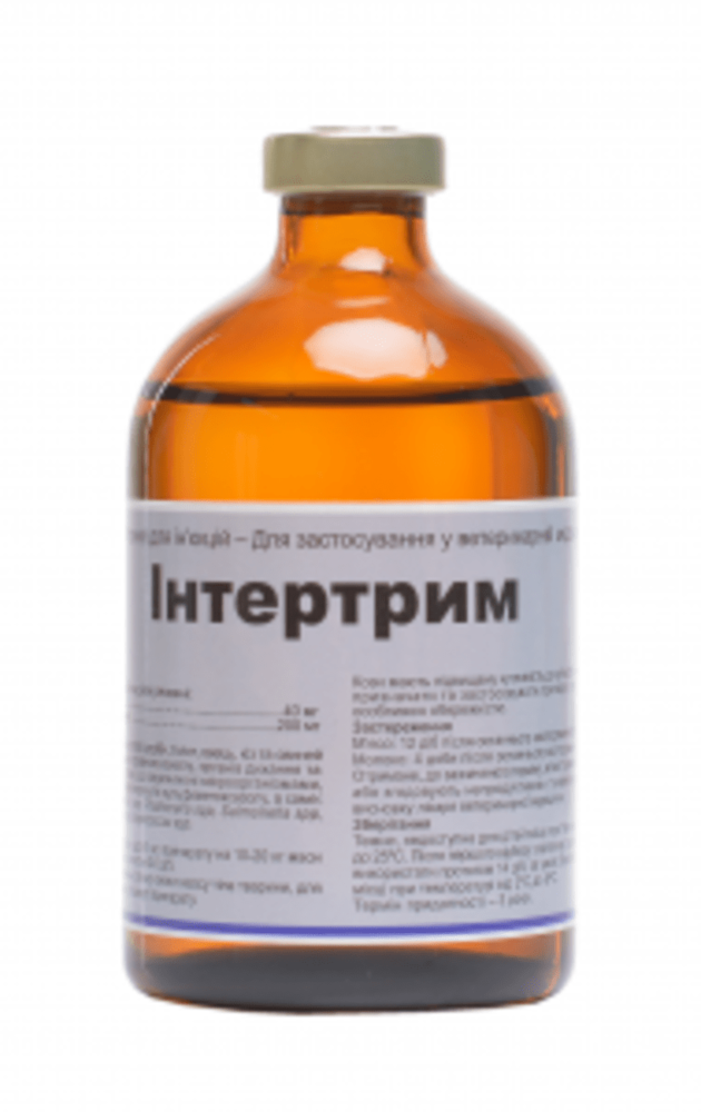 Інтертрим – комбінований хіміотерапевтичний препарат з широким антимікробним спектром дії проти грампозитивних та грамнегативних бактерій (E.coli, Haemophilus spp., Pasteurellaspp., Salmonellaspp.,Stahylococcusspp., Streptococcusspp. та інші). Активний також до більшості анеробних бактерій. Діючими речовинами препарату є сульфаметоксазол та триметоприм, які у поєднанні виявляють синергічний ефект, поетапно блокуючи синтез пурину у бактеріальній клітині.