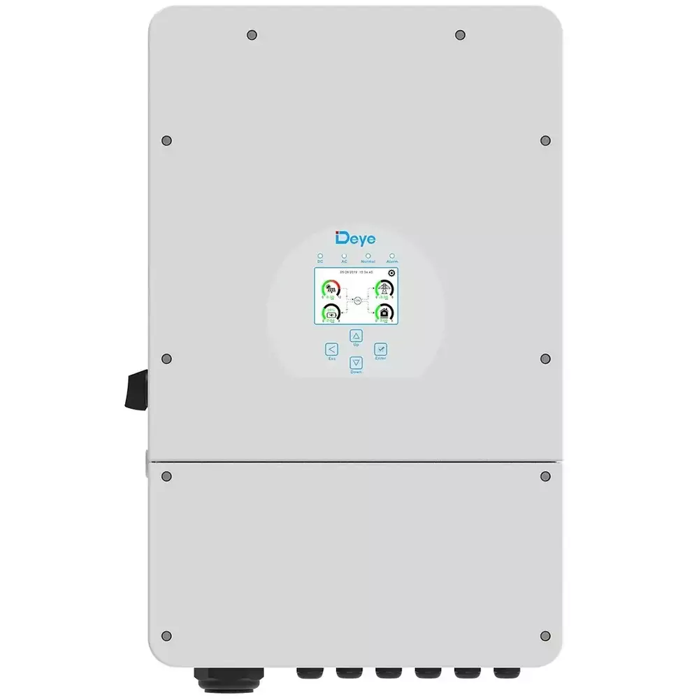 Deye SUN-12K-SG04LP3-EU – сучасний трифазний гібридний інвертор має потужність 12000Вт, напругу акумуляторних батарей 48В, що зможе забезпечити надійну систему електроживлення. Підтримка трифазного струму надає можливість широкого застосування пристрою.