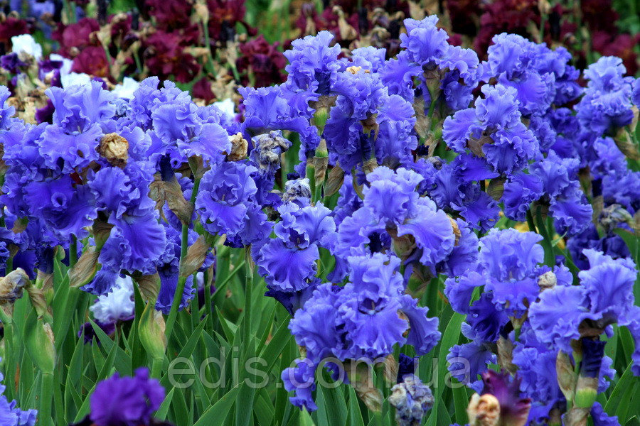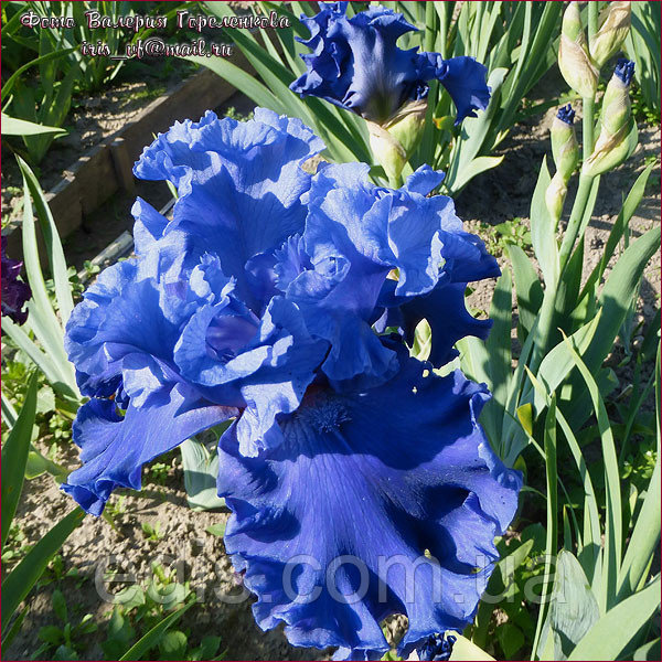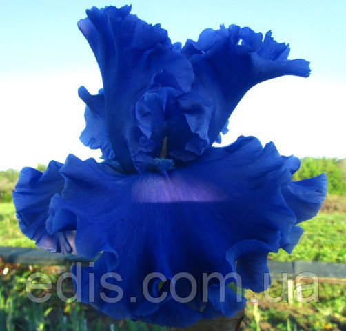 Iris Germanica (Бородатий) Sea Power - супергофрировка Забарвлення двотонна: синя з більш блідим гофрованим краєм. Квітка дуже великий, супергофрований Висота: 100 см Нагороди друге місце на приз Cook Cup (AIS 2004, California), HM-01, AM-03, Wister 2005, Медаль Дайкса 2006. Оригінатор - Кеппел, 1999, США.