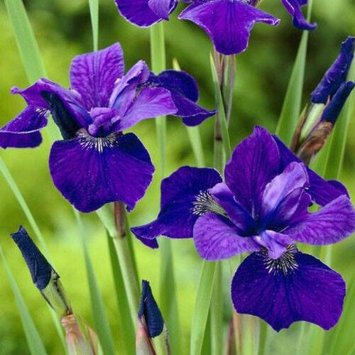 Квіти: Великі, синьо-фіолетові, з оксамитовими пелюстками та білими