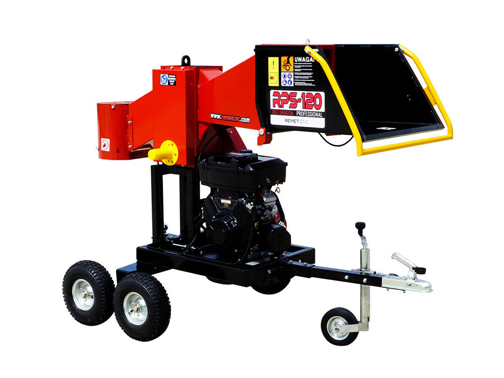 Измельчитель RPS-120 PROFESSIONAL оборудован высококачественным четырёхтактным двигателем мощностью 23 л.с.  Режущий блок размещён на поворотном столе (угол вращения 360°) который можно прикрепить к транспортному прицепу. Раскладной удлинённый раструб подачи древесины высокой жёсткости усилен профилем. Измельчитель оборудован защитным выключателем раструба подачи древесины и складной конвейерной лентой с ведущими колёсами длиной 2,3 м. Измельчитель предназначен для переработки древесных отходов и ветвей диаметром до 10 см. Переработанная древесина является превосходным и экологически чистым топливом.