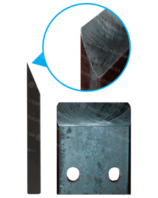 В измельчителе веток используются ножи, изготовленные из конструкционной стали 45, которая хорошо «держит» режущую кромку и обладает высокой стойкостью к механическим нагрузкам и проходят термическую обработку. Ножи имеют одностороннюю заточку, режущие кромки сходятся внахлест.