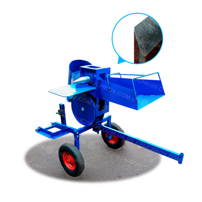 Сердцевина измельчителя установлена на раму с колесами. Имеется прицепной узел и натяжитель ремня, а также съёмное дышло, которое используется для транспортировки изделия.