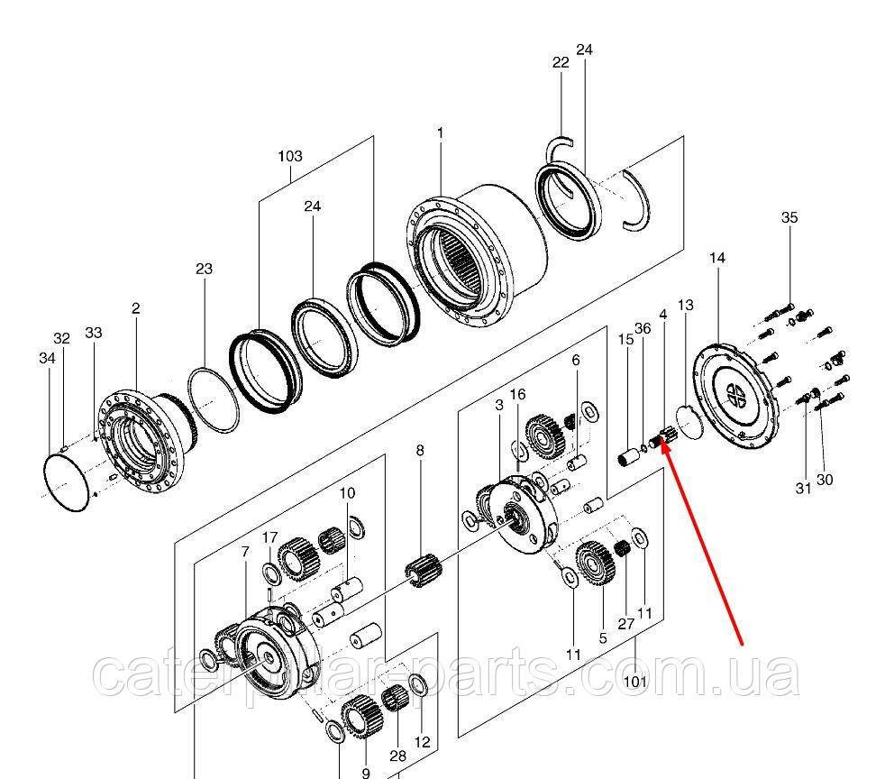 K9005372 Вал головної передачі DOOSAN DX140LC