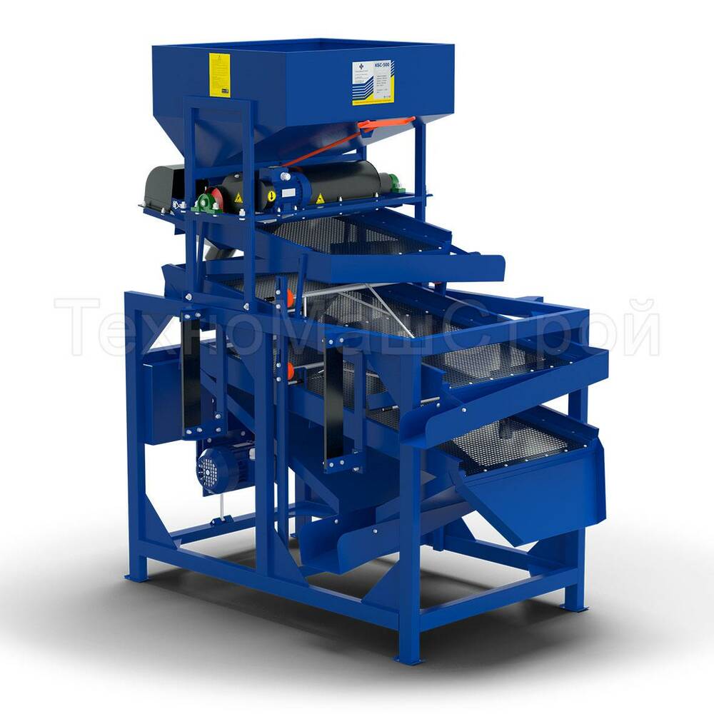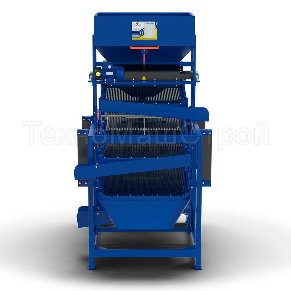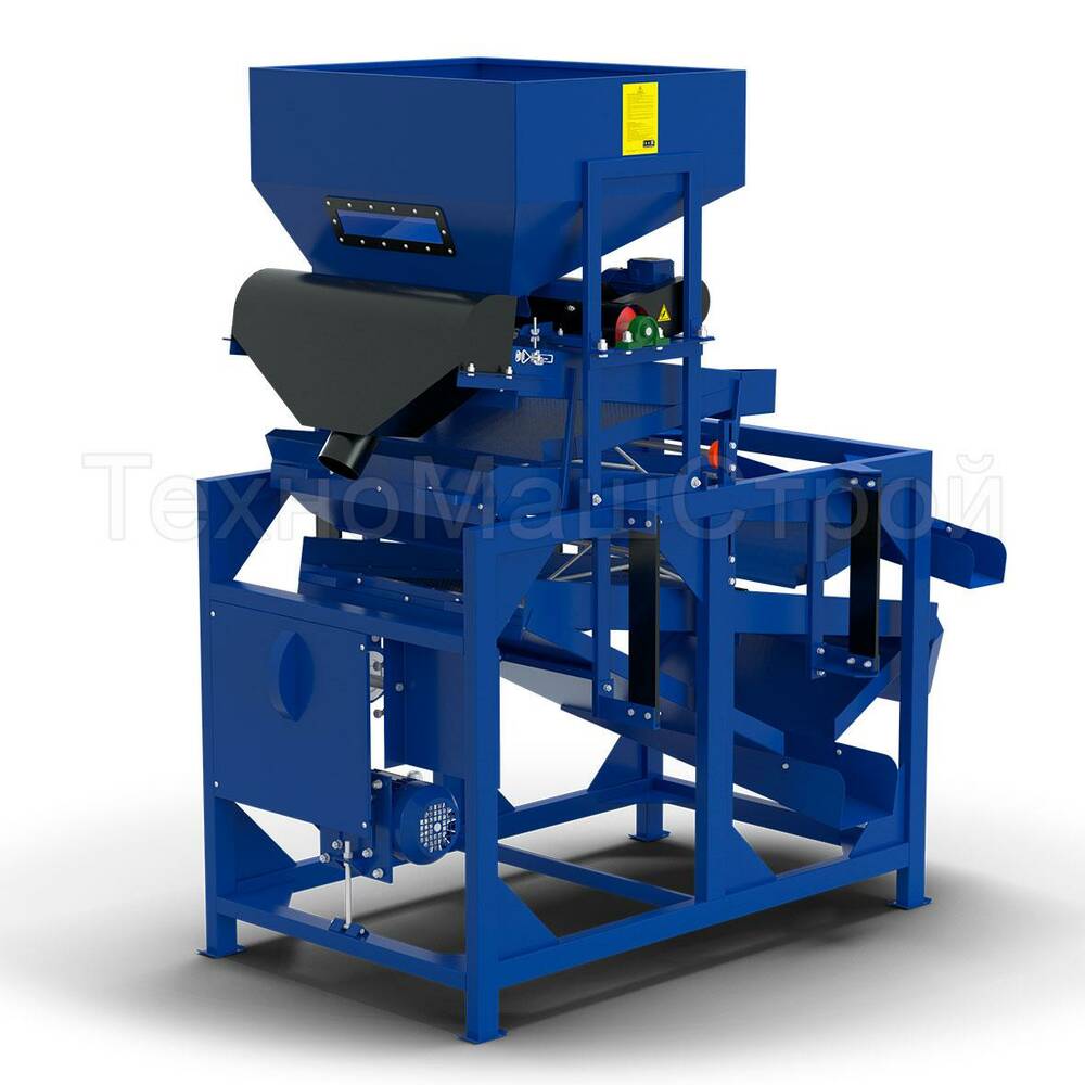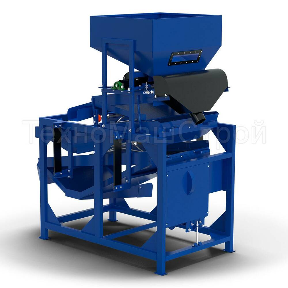 На калібраторі встановлений вентилятор для провіювання (з продувкою). В комплекті з калібратором йдуть 3 решета, з розміром і формою отворів за бажанням замовника (в залежності від оброблюваної культури).  Велике сміття йде сходом з верхнього решета. З середнього решета йде сходом велика фракція продукту, з нижнього - дрібна. Калібратор підходить для домашнього використання, міні-ферм, фермерських господарств тощо. Чудово працює в парі з аспірацією "ВП-2" від компанії "ТехноМашСтрой"