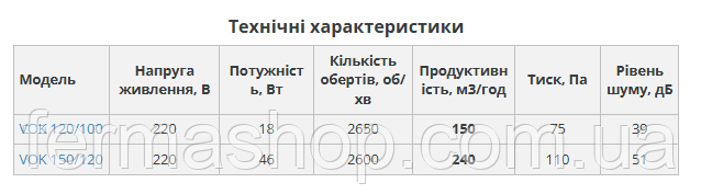 Даний тип вентиляторів ВОК (VOK) 150/120 призначений для постійної