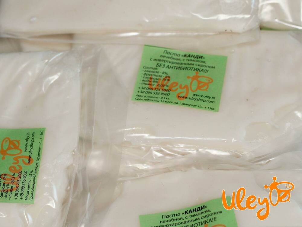 Канді має тістоподібну форму і повністю готова для підгодівлі бджіл. Використовується після очисного обльоту і в період осіннього нарощування сімей бджіл - повноцінна і повністю готова підгодівля для бджіл в пастоподібної формі, створена на основі сахарози та інверсії цукрового сиропу з додаванням тимолу. Некристаллизующееся, застосовується без додавання води.