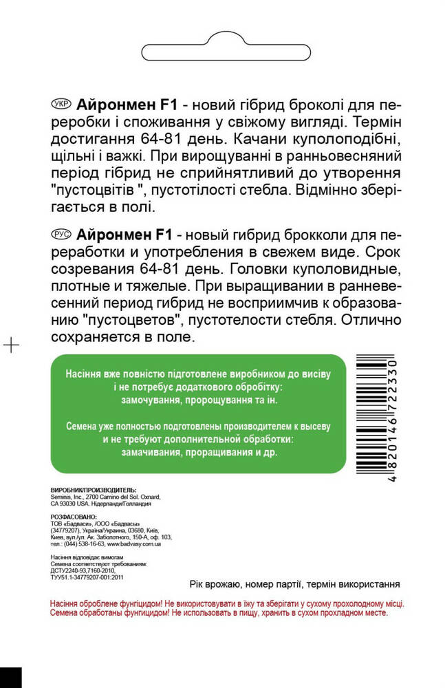 Капуста броколі Айронмен F1, 20 шт, Садиба Центр