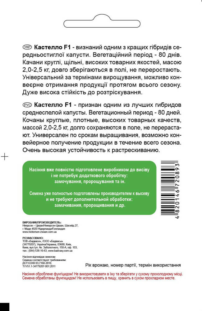 Капуста Кастелло F1, 20 шт, Садиба Центр