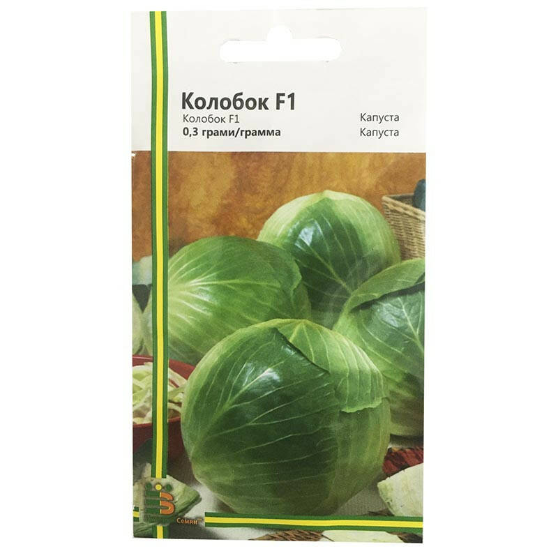 Капуста Колобок F1 - це пізньостиглий гібрид білокачанної капусти. Період вегетації 144-155 днів від сходів до технічної стиглості. Вирівняний округлий качан з коротким внутрішнім качаном, масою 2.0-3.5 кг. Гібрид щільний відмінних смакових якостей. Зовнішнє забарвлення зелене, на розрізі біле. Рекомендований для споживання у свіжому вигляді, квашення. Відрізняється високим вмістом цукрів, аскорбінової кислоти, відсутністю гіркоти. Цінність гібрида: висока врожайність, дружне формування врожаю, транспортабельність і лежкість (протягом 6-7 місяців). Стійкий до хвороб і розтріскування.