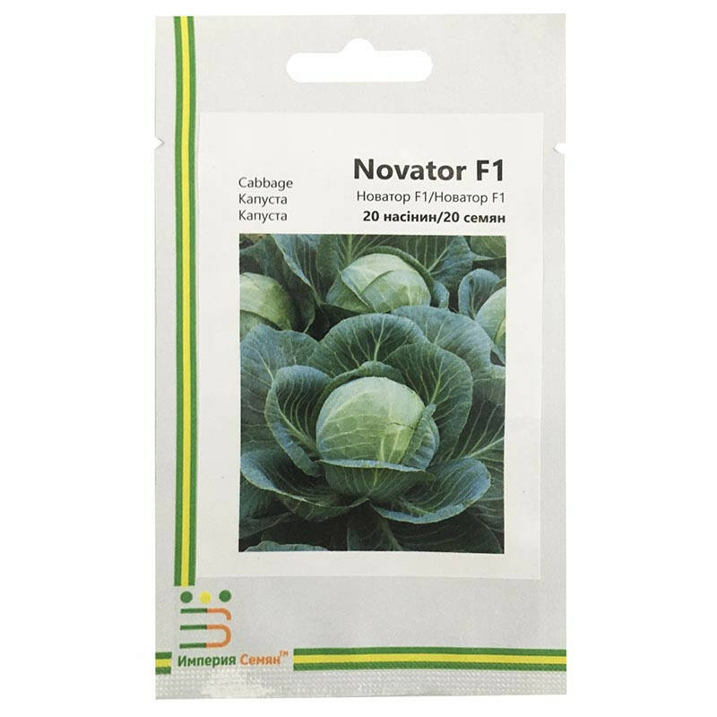 Капуста Новатор F1 – пізній гібрид із високими показниками врожайності, виведений фахівцями компанії Syngenta Seeds (Нідерланди). Вегетаційний період 130-135 днів від сходів до технічної стиглості. Плоди насиченого зеленого кольору вирівняні вагою 4-4,5 кг. Листя ніжне, без потовщень, щільно прилягає одне до одного. При розрізі видно структуру білого кольору. Урожай можна забирати механізованим способом, очищення може проводитися пневматично. Завдяки відмінним смаковим якостям вживається в їжу у будь-якому вигляді. Характеризується відмінним товарним виглядом, чудовими смаковими якостями та лежкістю понад 7 місяців.