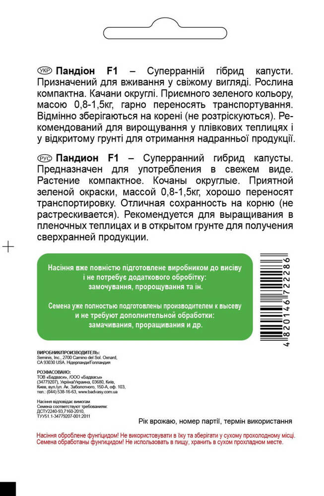 Капуста Пандіон F1, 20 шт, Садиба Центр