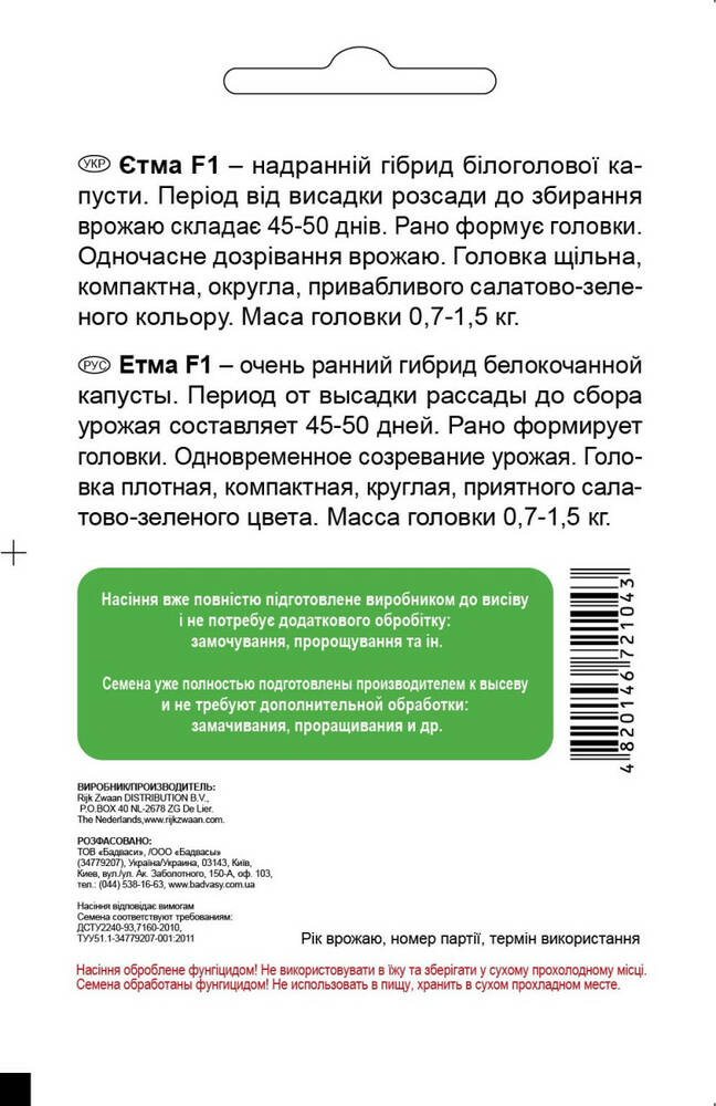 Капуста Єтма F1, 20 шт, Садиба Центр
