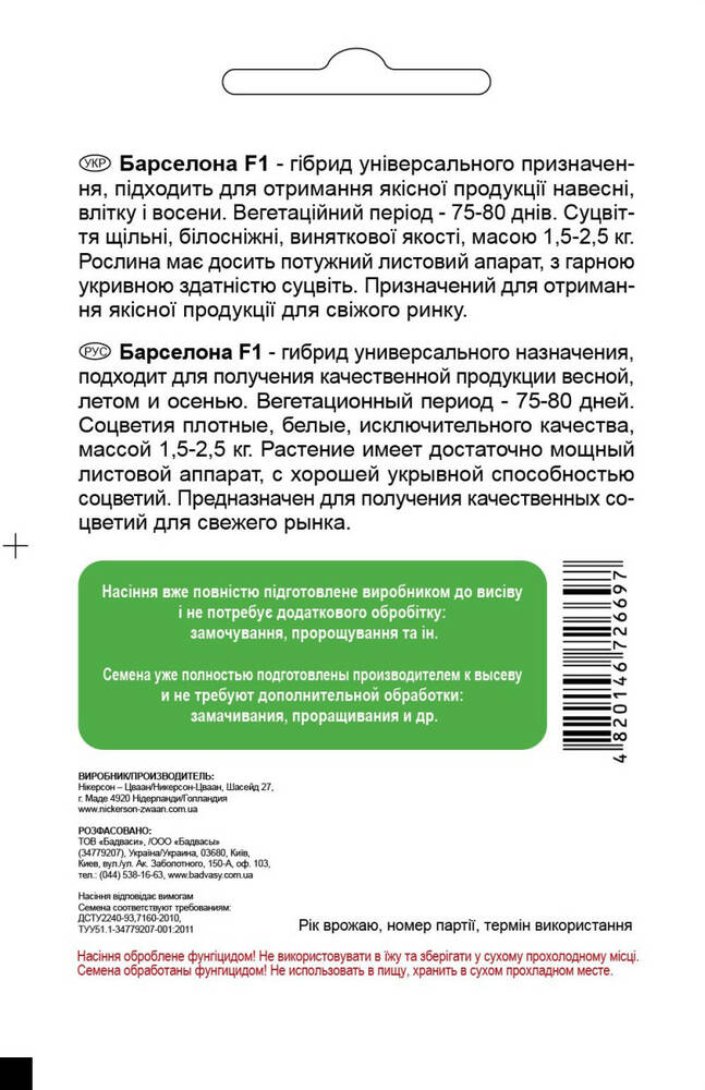 Капуста цвітна Барселона F1, 15 шт, Садиба Центр