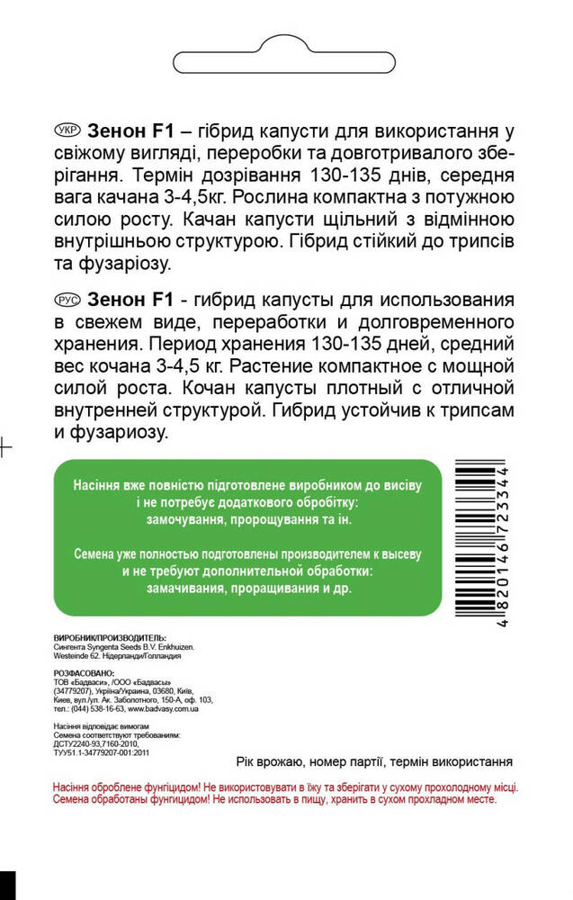 Капуста Зенон F1, 20 шт, Садиба Центр
