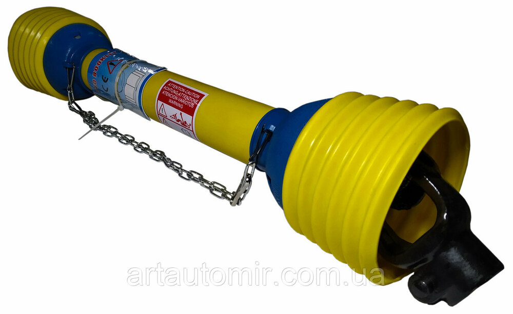 Карданный вал с широкоугольным шарниром усиленный для сеялки, опрыскивателя, загрузчика сухих кормов, разбрасывателя минеральных удобрений. Возможно применение для другой сельскохозяйственной техники.