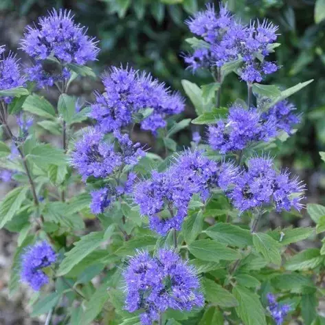Каріоптеріс комонський — це красивий, невибагливий, листопадний багаторічний чагарник заввишки та завширшки до 100 см, квітучий яскраво-синім або ліловими ароматними квітками від середини літа до вересня. Він має овечо-ланцетні, сіро-зелене зубчасте листя із запахом лимона та віддає перевагу сонячним, захищеним ділянкам із вапняним ґрунтом.