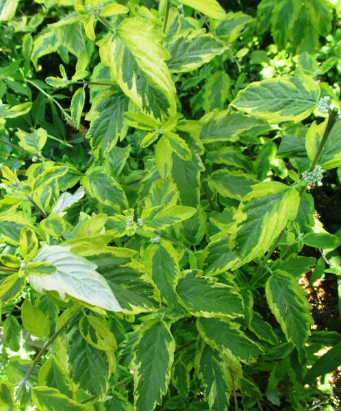 Листя: Ланцетне, сіро-зелене, з яскравою жовто-зеленою нерегулярною облямівкою, ароматне (лимон/евкаліпт).