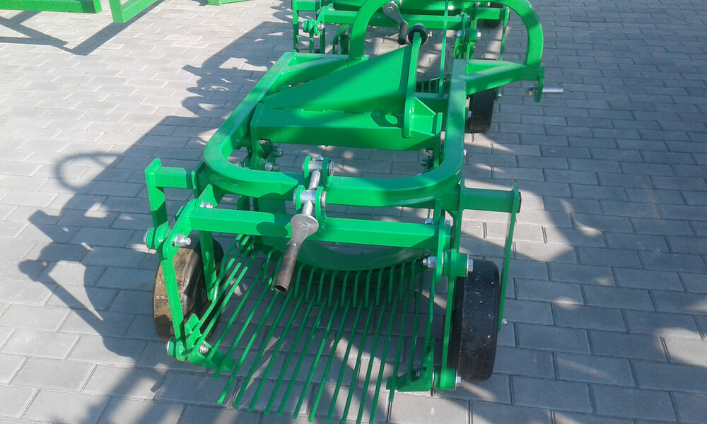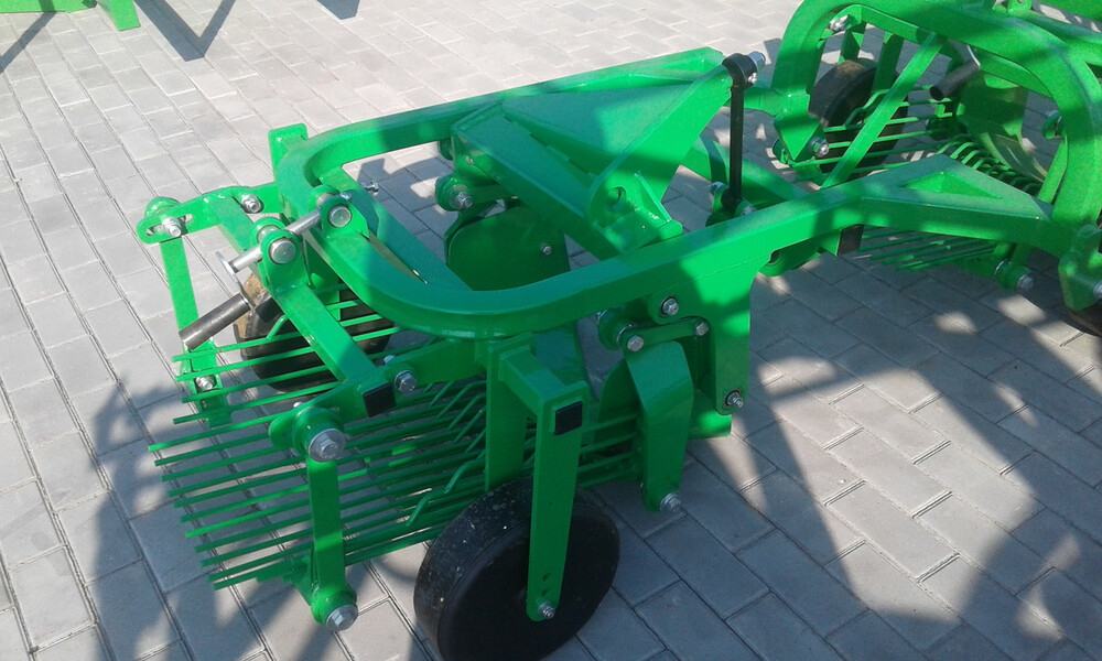 Картофелекопалка вибрационная 1 рядная Bomet – это навесное оборудование, которое используется при сборе урожая картофеля. Передний нож врезается в картофеленесущий ряд и поднимает землю с картофелем на копалку, на ней установлены прутья, через которые под вибрациями просыпается земля, и на поверхность высыпается картофель.