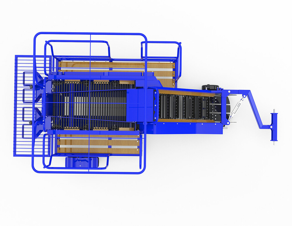 КАРТОФЕЛЕУБОРОЧНЫЙ КОМБАЙН RMZ А10 - полунавесной картофелеуборочный комбайн для копки, сборки и сортировки картофеля - оснащен платформой для операторов, транспортером для подъема и сортировки картофеля.