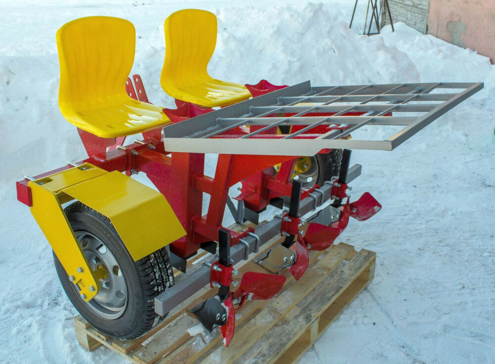 Эта сажалка применяется для двурядной полуавтоматической посадки: проросших клубней картофеля, чеснока, кукурузы, лука и дальнейшего окучивания во время выращивания. Сажалку можно без труда переоборудовать в пропашной культиватор или окучник картофеля.
