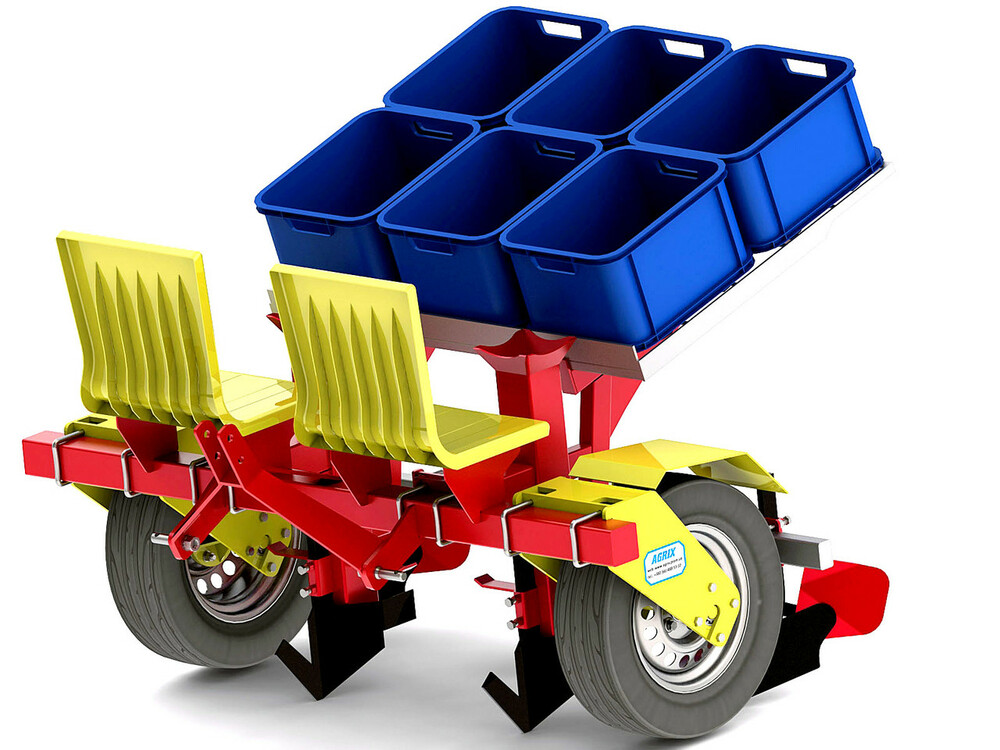 Передние плуги сажалки создают борозду в поле, в трубу бросаются, вручную, клубни которые попадают в землю. На завершающем этапе плужки окучивают клубни почвой и формируют гребень. Глубина посадки регулируется. Ширина посадки –регулируется. Сиденья, удобные, для двух человек. На специальную подставку можно разместить до 350 кг посадочного материала. Количество рядков можно увеличить до 3-х, заказав дополнительный приемник-трубу.