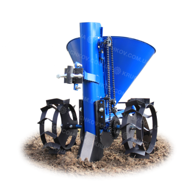Однорядная цепная картофелесажалка предназначена для механизации посадки картофеля. Агрегатируется с мотоблоками и мототракторами мощностью от 6 л.с.