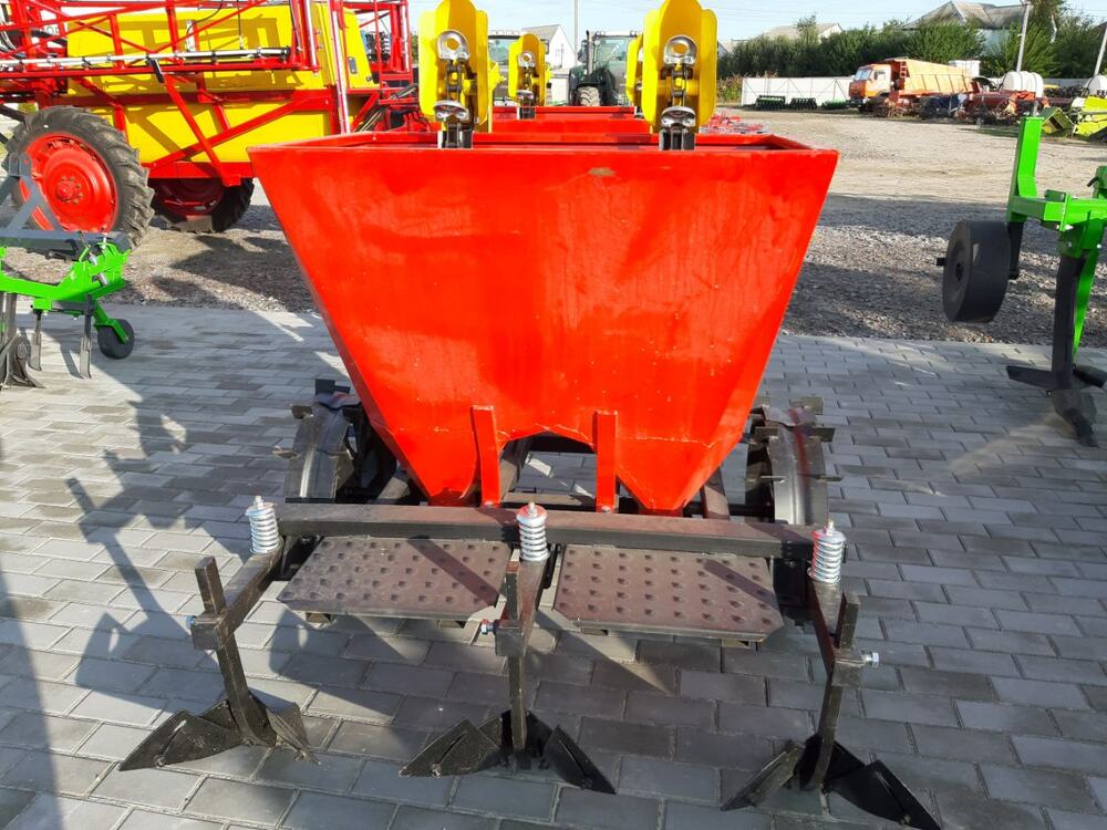 Дворядна саджалка навісна для картоплі приєднується до трактора за допомогою заднього навісного пристрою (ЗНУ). Саджалка взаємодіє із зчіпкою ЗНУ другої категорії. Вона виконує всі операції в одному робочому циклі, пов'язаних з висадженням картоплі тобто виорює борозни, автоматично висаджує картоплю і обробляє землю, формуючи гряди.